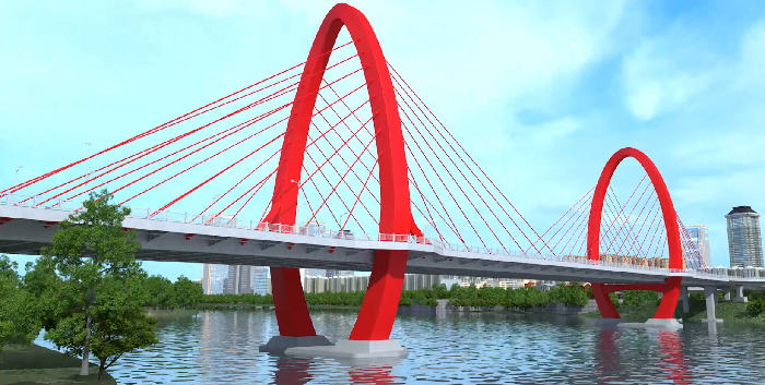 芝山桥南起福建省漳州市江滨路,跨越九龙江西,止于瑞京路—芝山南路交叉口,是福建省重点工程。主桥长300米,桥面宽36米,双向6车道,采用双塔双索面斜拉桥。福船集团承接其中钢梁、钢塔柱制作及安装工程,工程总量约0.5万吨。其中编制并实施的钢主塔无支撑搭载方案充分体现了开云在线开户的技术实力。 -