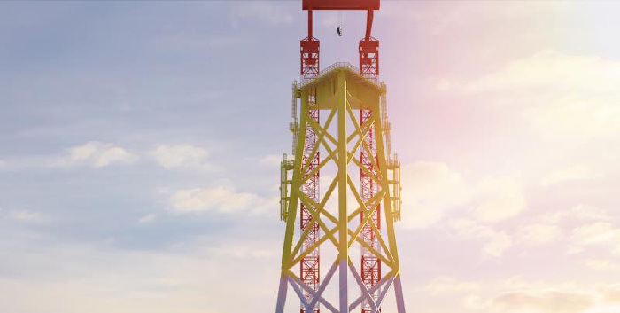 长乐外海海上风电场 C 区项目位于福州市长乐区东部海域、闽江口南岸,场址距离长 乐海岸线 31 千米~ 50 千米海域,平均水深 37 米~ 45 米。福建船政承接该项目 25 套吸 力式导管架制作工程,其中单套三筒导管架高度近百米,底部最大尺寸超 40 米,单套导管 架最大重量约 1200 吨。 -